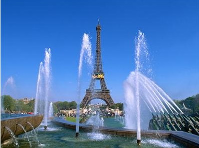 - Tháp Eiffel – cao 325 mét, biểu tượng của nước Pháp, kinh đô ánh sáng và thời trang, công trình kiến trúc bằng sắt, nằm trên công viên Champ-de-Mars, công trình do Gustave Eiffel cùng các đồng nghiệp xây dựng nhân triển lãm thế giới năm 1889, cũng là dịp kỷ niệm 100 năm Cách Mạng Pháp.